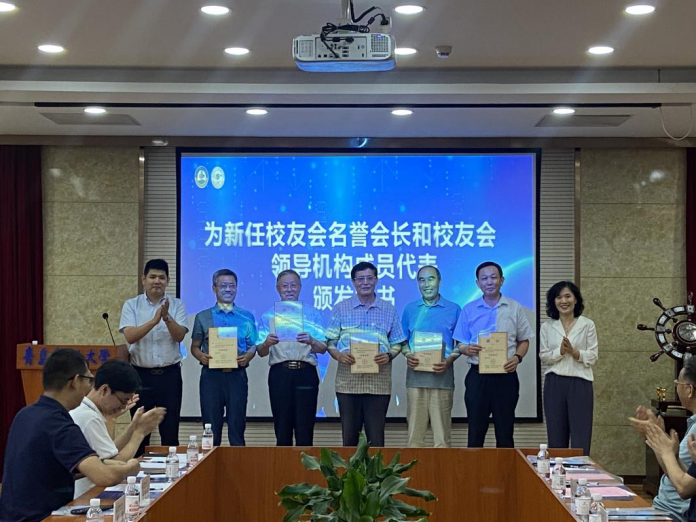 主要党政领导的多名同志担任新一届校友会的名誉会长,由王景景为各位代表颁发聘书。