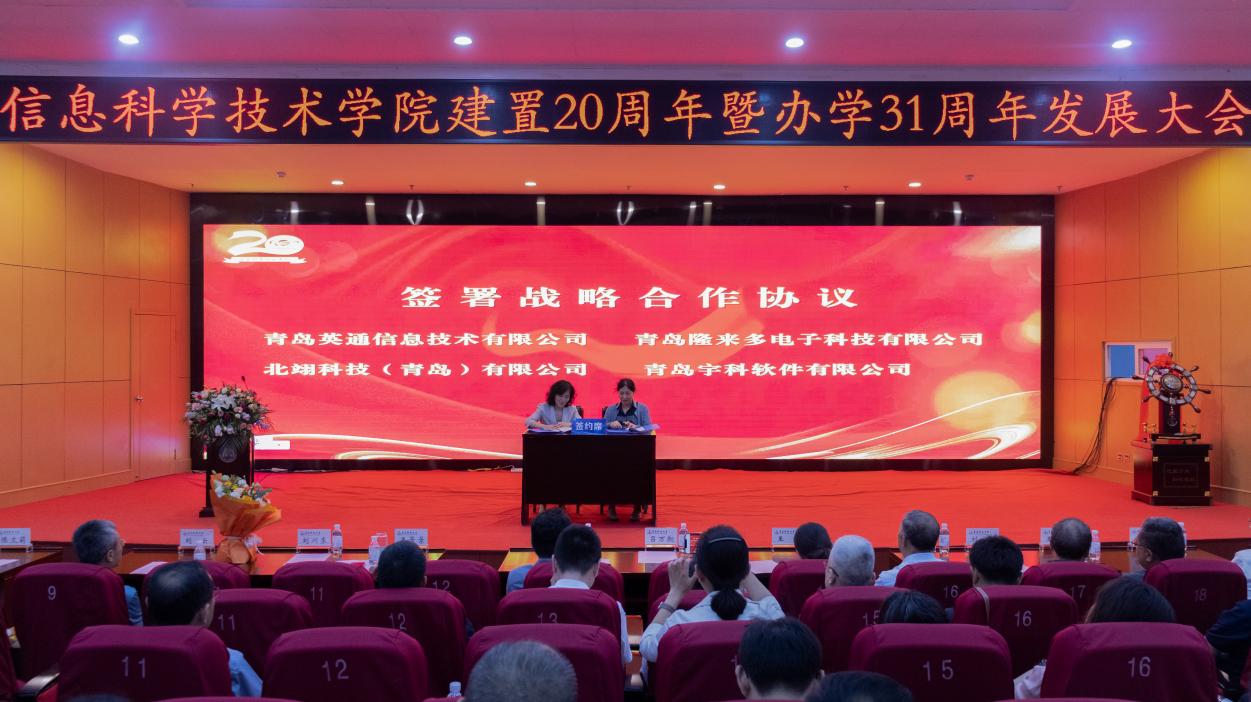 办学以来与各级党政机关部门、企事业单位、行业协会等建立了多种形式的合作与交流,并产生了多项合作成果。为了进一步提升合作层次,深化合作内涵,在大会现场,我院与青岛英通信息技术有限公司、青岛隆来多电子科技有限公司、北翊科技(青岛)有限公司、青岛宇科软件有限公司,分别签订共建行业学院的战略合作协议。
