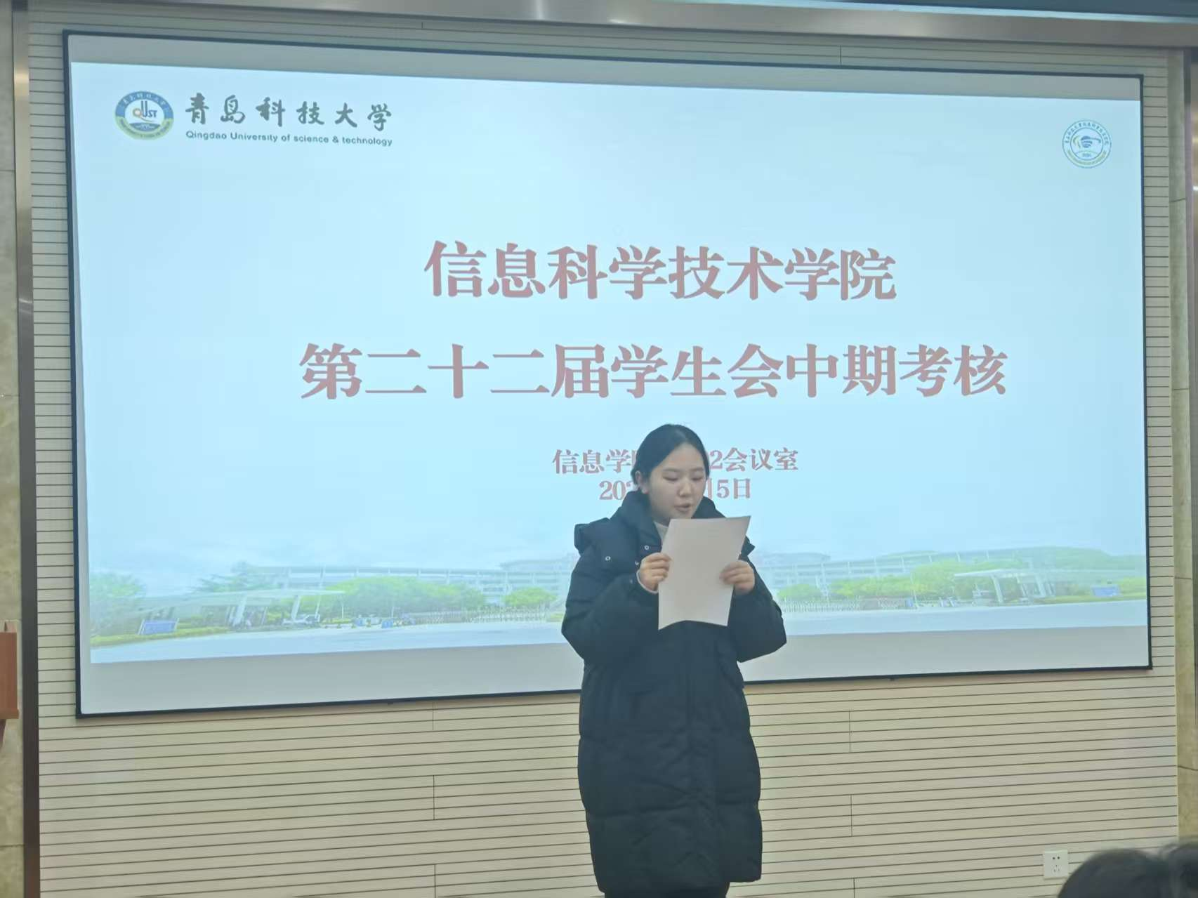 学生会中期考核述职报告在学院楼402会议室开展。学生会指导老师郝昱猛、学生会全体成员参加述职。
