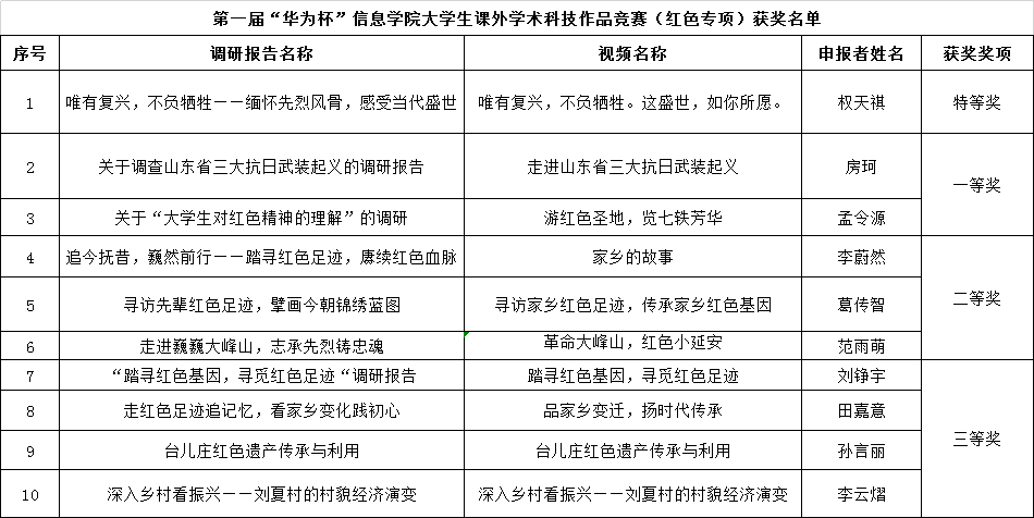 大学生课外学术科技作品竞赛经学院初赛决赛于2021年3月9日圆满结束,主赛道共评出特等奖5项,一等奖5项,二等奖8项,三等奖10项;红色专项共评出特等奖1项,一等奖2项,二等奖3项,三等奖4项,现将获奖名单公示,详见附件。