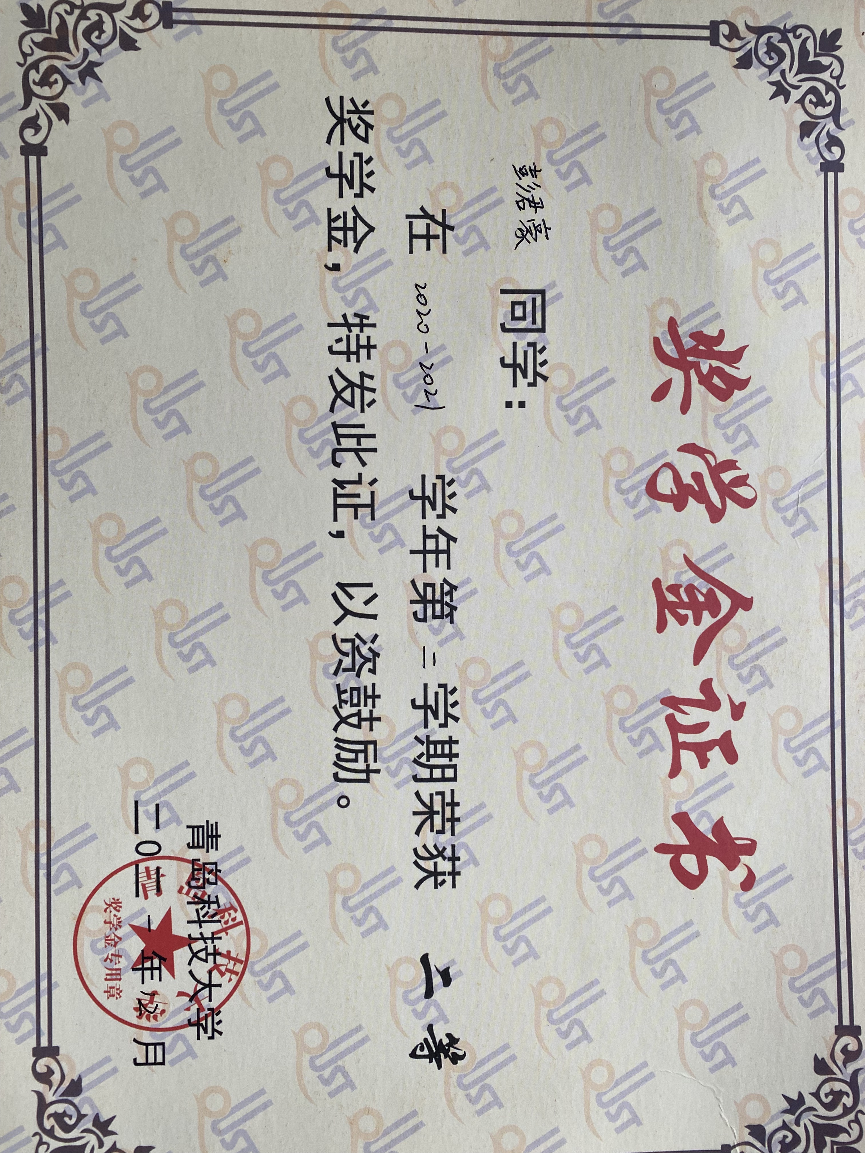 校级二等奖学金;