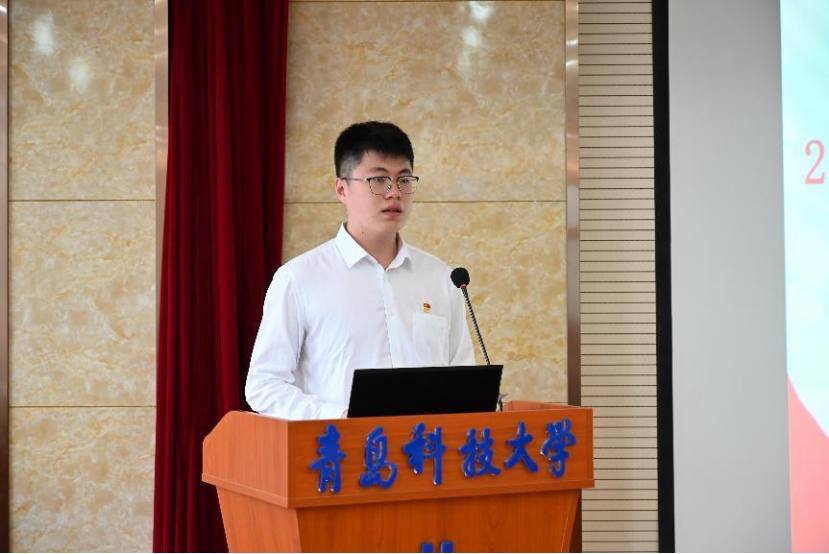 随后,学院2022届校友年级理事会会长丁一晟在发言中表达了对学院感谢和不舍。“参天大树必有其根,环山之水必有其源”,他号召全体信息员认真履行职责,扎根实践,牢记校训校风,发扬“科大精神”,充分发挥桥梁纽带作用,为凝聚校友力量、服务母校发展、促进社会进步贡献力量。